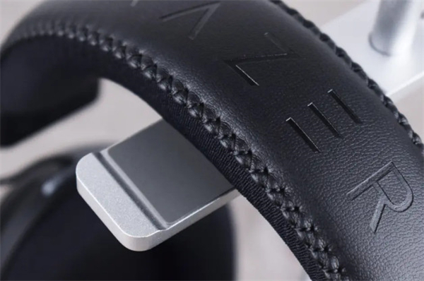 在头梁部分,旋风黑鲨V2专业版采用了顶部皮革+下部FLOWKNIT记忆海绵+包边加固设计,这种组合在保证头梁颜值和舒适度基础上,亦能提升其耐用度,减缓头梁开边的问题。