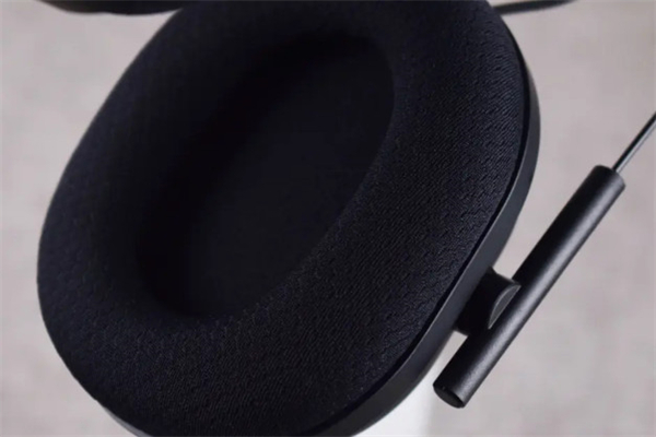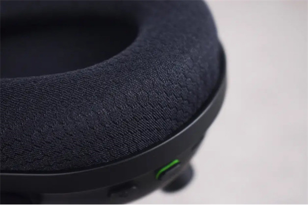 耳垫部分,旋风黑鲨V2专业版使用全包围尺寸耳垫+FLOWKNIT柔软记忆海绵组合,相比传统蛋白皮耳垫,FLOWKNIT表面材质更加干爽,并在材质表面带有透气的六边形网状结构,可以说糅合了蛋白皮耳垫和布绒耳垫的优点,长时间佩戴体验会有明显改善。