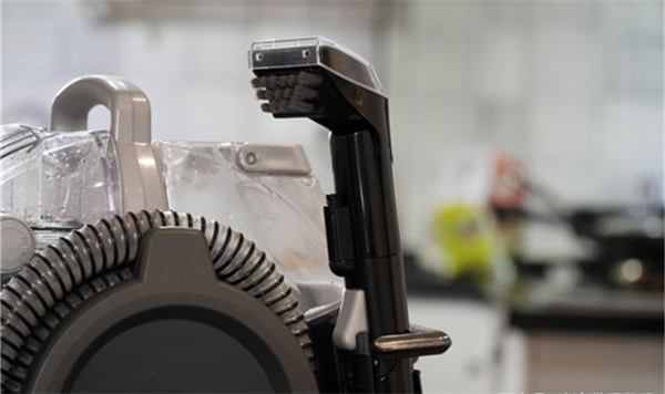 先来看它的功能设计,机身右侧是缠绕起来的软管,还有一个黑色的刷头。
