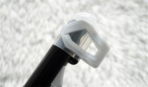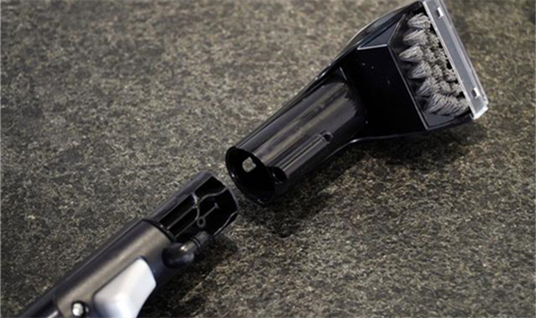 操作也很简单,将这枚自清洁刷头套在软管上之后,开启机器即可实现自清洁。
