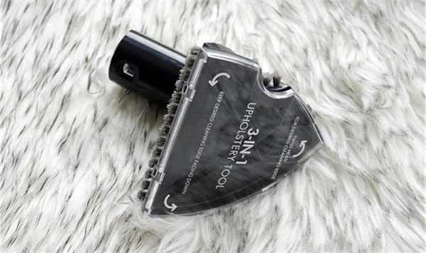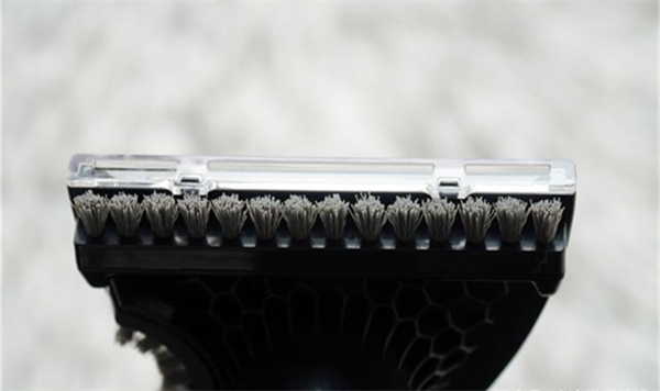在刷头的一侧,是密密麻麻一排刷毛,而且刷头做的很薄,特别适合沙发缝隙之类的区域。