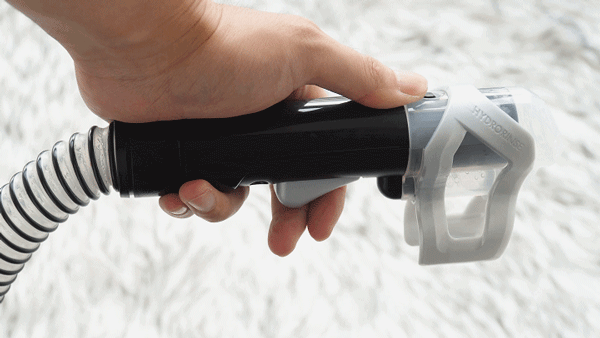 按住刷头上的扳机,刷头会向外喷水,然后对准目标物体,开始刮洗就可以了。我拿到这台机器的时候,完全没有看说明书,就只是自己胡乱摸索,一分钟就可以上手。