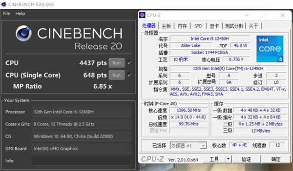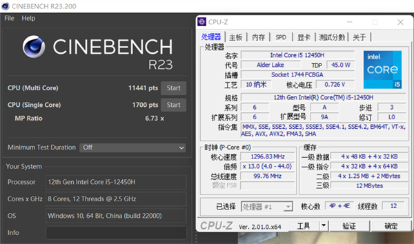️二、CPU和其它:酷睿i5-12450H火力全开 多核超越上代i7约61.3%