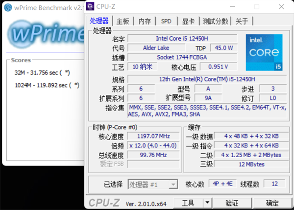 在wPrime测试中,32M单线程跑分耗时31.756秒,1024M多线程跑分耗时119.892秒。