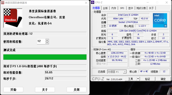 在国际象棋测试中,相对性能倍数达到了55.65.每秒26712千步。