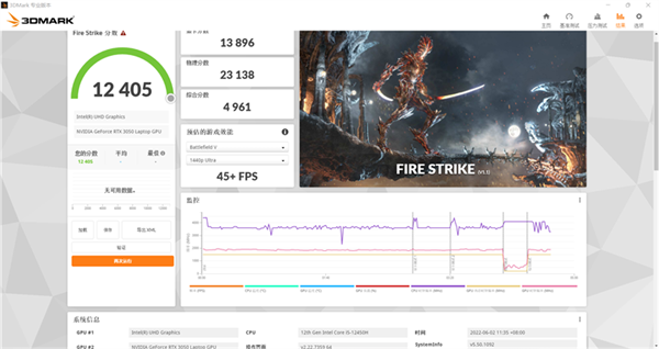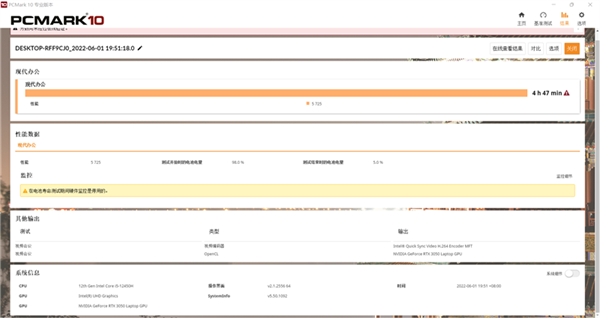 现在,我们来看看酷睿i5-12450H配合RTX 3050的 Laptop,有着什么样的表现。