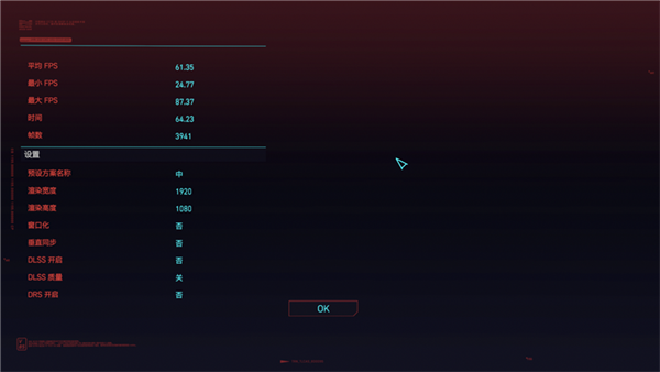 《赛博朋克2077》在中画质下,平均帧数为61.35 FPS。