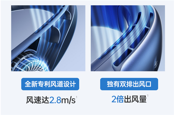 2.凉风模式:四风道设计,双排出风口,出风量比同类产品多一倍;但又不会出现像手持风扇那样,吹久了会头痛的情况,相反,它的风更像是从夏日旷野徐徐吹来的凉风,给人一种心旷神怡的感觉。