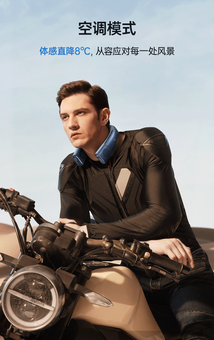 1.空调模式:30℃下的天气,空调模式简直就是我的续命神器,3s迅速制冷功能在我心里已经是超越了夏日第一口冰汽水的地位。颈侧两边各有一块变频磁晶体控温片来调节体感温度,超大75c㎡曲面双频温控片,降温更快更舒适的同时也很静音,噪音低到基本可以忽略。