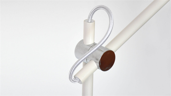 为了满足不同的使用场景以及用户的需求,南卡台灯设计有多处可调节的关节。在两段灯臂连接处设计有银色的旋转区域,支持180度俯仰调节,且阻尼比较大,能够实现任意位置悬停。两段灯臂之间用于供电的线材也直接裸露在外面,搭配尼龙材质包裹,更耐弯折。