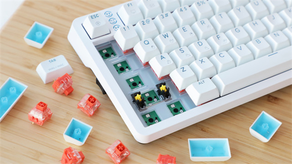 丹霞轴手感线性顺滑,力度控制均匀,按压起来非常轻快,适中的触底压力与回弹力度也能为用户带来不错的敲击手感。苍岭轴作为有声段落轴,段落手感清晰,声音清脆明亮,按压反应以及回弹表现都很不错,也有着不错的顺滑度。烟漠轴手感与BOX V2茶轴较为类似,段落感要稍强一些,回弹跟手,触底稳定,也能为用户带来不一样的手感体验。大键位部分采用了卫星轴方案,手感处理干净利落,晃动、杂音控制也较为不错,调校水平还是很不错的。不过丹霞轴个别大键位手感稍差,也有较为明显的沙沙声,品控部分还是有待加强的。
