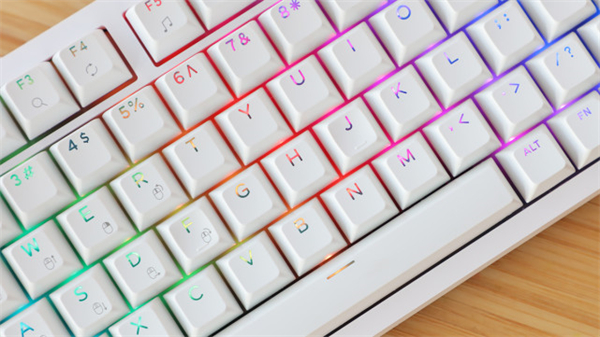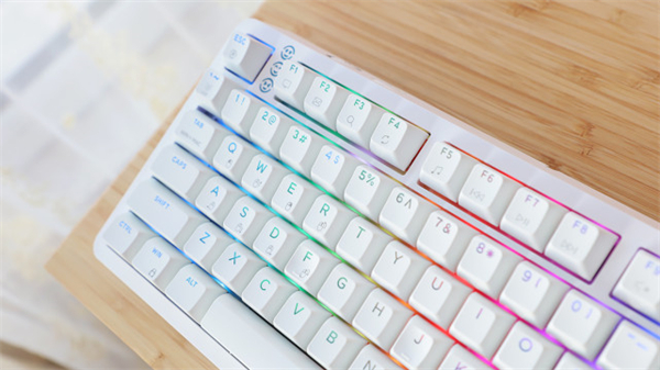 黑峡谷Y系列三模热插拔键盘提供了全域的RGB背光,键盘也内置了多种灯效模式,方便用户根据个人喜好来更换使用。灯效部分支持亮度、动态速度调整,同时还支持颜色、方向、呼吸等调节,在灯光玩法上还是非常完备的。整体灯光亮度处理柔和均匀,透明的PC定位板也带来了更好的透光均光表现,键帽间隙也完全被灯光填满,透光字符也也进一步提升了整体的视觉观感,对于营造桌面灯光氛围,或者满足夜间使用辨识都非常不错。