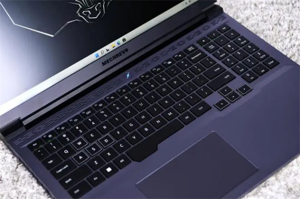机械革命螺母LOGO的电源按键位于键盘上部居中位置,集成状态指示灯,与A面LOGO和肩部灯带联动变换颜色。