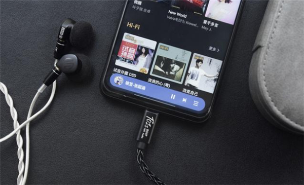 随机标配有USB C To USB-A的转接头,手机、电脑都能用。而线缆则是发烧级的8股5N单晶铜编织线(外皮为柔软的TPE材质)。T01S还采用了日本大牌晶振和电容电阻及特别调教的监听级曲线,可有效解决底噪及推力问题,使声音更为纯净自然。