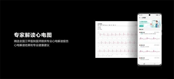 指尖轻触腕表侧电极即可采集30秒心电信号,并配合华为心电分析提示软件生成心电图报告,提示成人窦性心律、心房颤动、室性早搏和房性早搏。同时,华为加入中国医促会发起的血管健康研究,基于华为为其搭载的高性能的PPG和ECG传感器,使得华为手表可以精准筛查动脉硬化风险,为用户提供专业的健康建议。