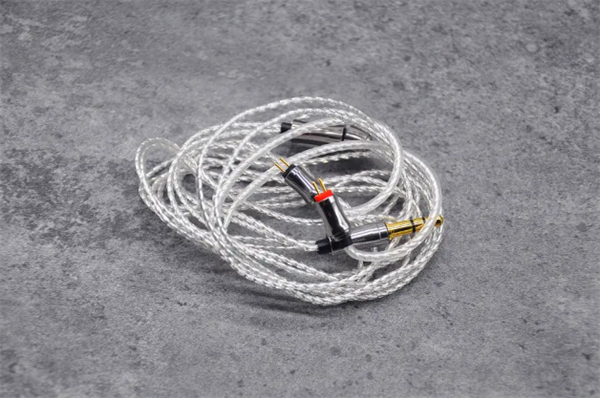 Djembe的耳机线是一条4股2pin(0.78mm)无氧铜镀银线,整体看起来比较精致,颜值也不错,笔者试听了下耳机,镀银线材质的加入,对声音通透度和解析力方面还是不错的。