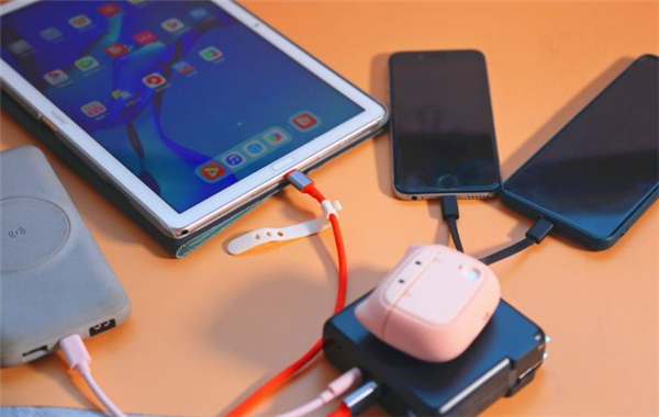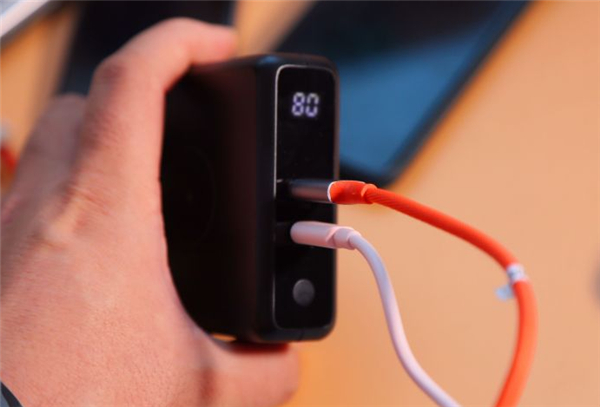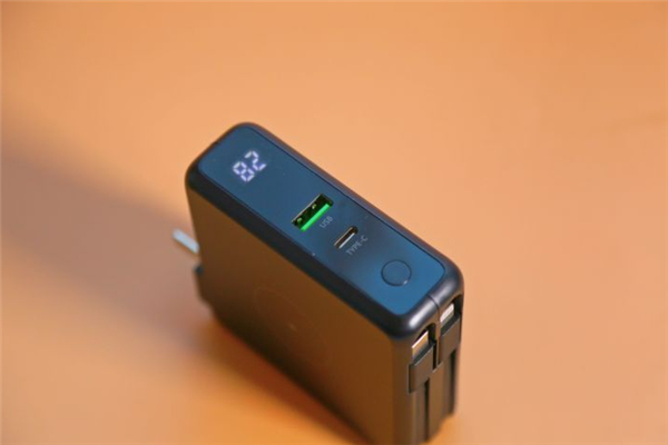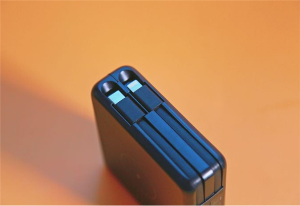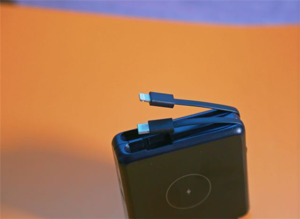 自带2根充电线,Lightning接口和Type-C接口,满足iPhone和安卓手机的充电需求。同时它也自带了充电插头,这个真的十分人性化,很多时候,我们外出,总是忘掉插头或者数据线,这样都自带了,万一忘带了,也省去了尴尬。