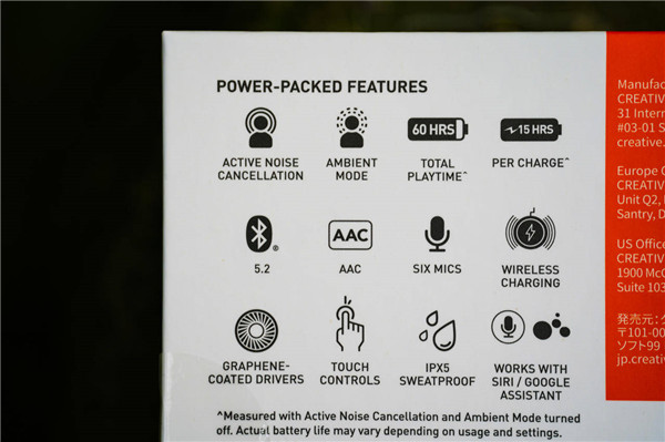 创新Outlier Pro整个包装设计是创新一如既往的风格,除了耳机和收纳仓,还包括了一对替换的硅胶耳塞和一根 Type C接口的数据线,另外还有一本快速使用指南。