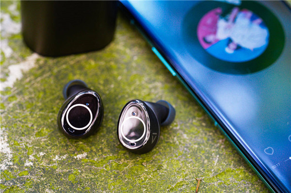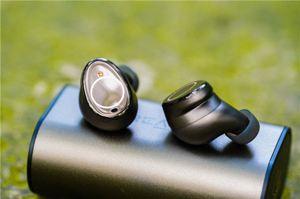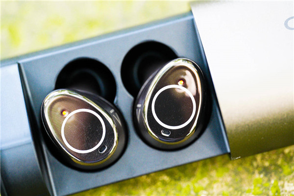 整个耳机的外观应该是这么多代产品以来最大的一次改变,看起来更具设计感,有一点水滴或者鹅卵石的感觉。腔体上有一个金属圆环,里面指示的就是触碰区域。遗憾的是以前的环形呼吸灯就不见了,取而代之的是LED指示灯。