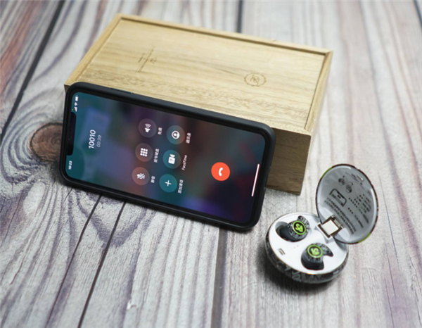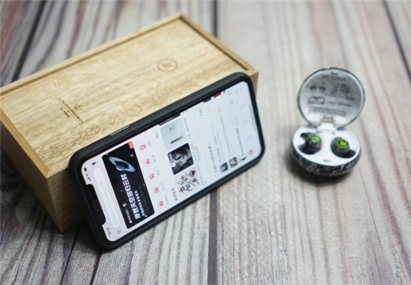 魔浪S充电盒采用了翻盖式设计,打开充电仓可以看到耳机的主体,耳机的颜色也采用了黑绿色。