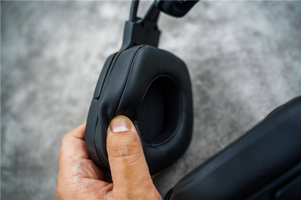 耳罩是接触耳朵的地方,所以在用料方面尤其注重,而G575游戏耳机耳罩采用的是仿蛋白质感材质,设计上采用异形大内孔耳罩,所以看上去还挺大,但可以轻松包裹耳朵,隔音效果还挺不错。