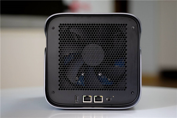 在风扇下方设有1个USB 2.0接口、2个2.5G网络接口和电源接口。如今高端的NAS大多都会配备2个2.5G网络接口,做链路聚合可以增大带宽,如果是在跨网段这种特殊场景下使用,双网络接口也能派上用场,对喜欢折腾软路由的人而说,更是少不了双网络接口了。