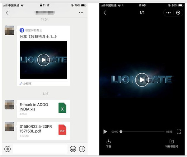 极空间中的文件可以直接分享给微信好友、QQ好友和钉钉联系人,有时候要给客户展示一些视频和PPT之类的文件,受限于微信传送文件大小的限制,平时都是通过邮箱或者网盘发送,客户查阅也不方便,这样就不用通过邮箱或者网盘发送了,效率可以大大提高。像这种10几个G的电影,微信好友收到之后可以直接播放或者下载,朋友想看啥电影,直接分享链接给他就好,简直不要太方便。