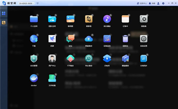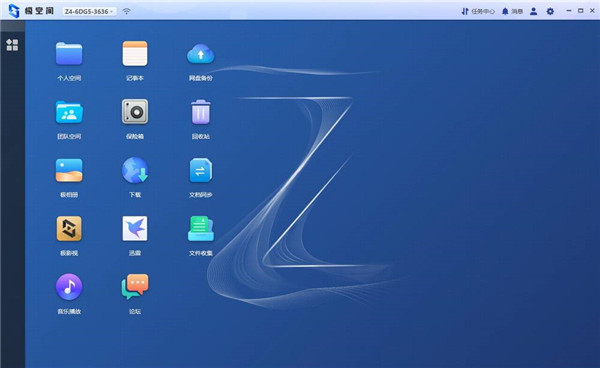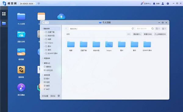 ZOS系统初体验极空间新Z4搭载的是自主研发的ZOS系统,电脑端有两种选择,要么是直接在网页里输入zconnect.cn,然后进行NAS的初始化和连接,或者安装极空间应用程序。登录之后,两者的界面是相同的。ZOS系统的主界面设计得很简洁美观,系统菜单非常的条理有序。