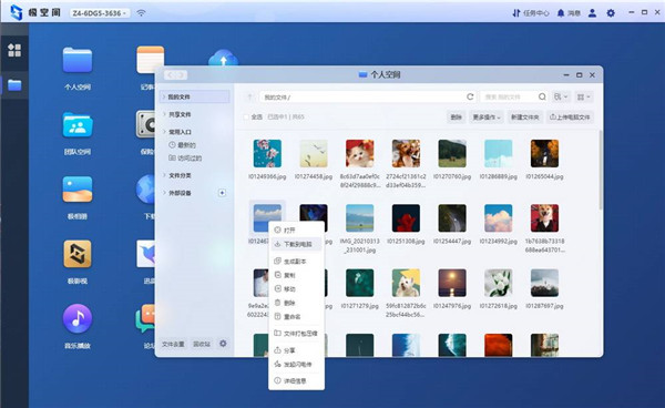 打开个人空间,就可以看到除了保险箱外用户自己上传的所有文件,在这里友情提示大家先建立文件夹,然后再上传文件,因为ZOS系统中的极影视、音乐如果要添加内容,是以文件夹为单位进行添加的。此外,熟悉的右键选项也给文件操作带来很大的方便。