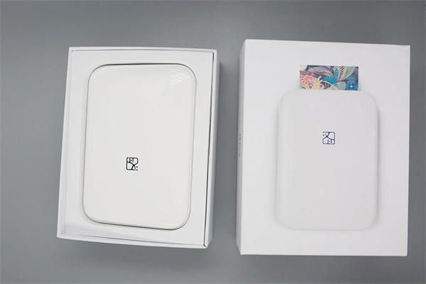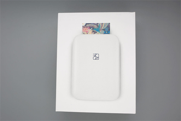 俯瞰,正面为产品示意图,加持logo和半露出的打印中照片,对其尺寸为84*117*19mm的小身板,能有如此色彩的把控力,还是期待。