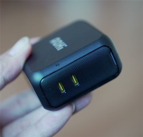 双C口的设计,盲插相当方便。AI芯片可动态分配功率,C1或C2单口充笔记本时每个口最高可达100W;C1笔记本+C2手机时C1口可达65W,C2口可达20W;C1笔记本+C2笔记本时C1可达65W,C2可达30W。
