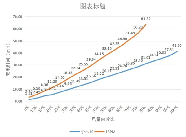 充电速度反面,笔者使用了手中的小米10至尊纪念版(最高支持120W有线快充)和iPhone 13 Pro Max(最高支持20W有线快充)进行了测试。实测前者在从电量0%~100%充电时可以全程达到快充模式,而后者在0%~80%时为快充模式,在80%之后则切换为了普通模式,故我们只测试了其快充期间的从点速度作为参考。