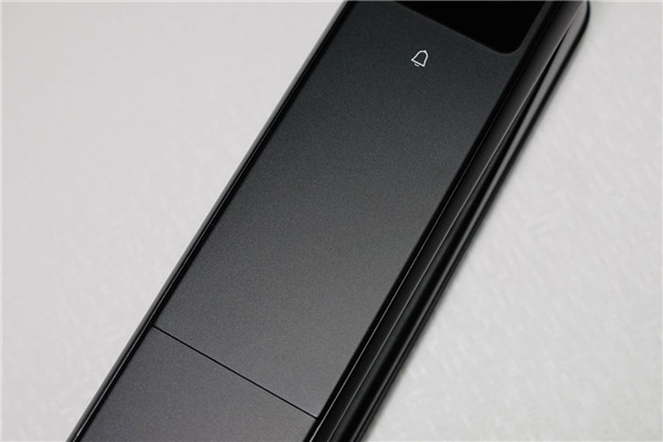 猫眼的下方是门铃和密码面板,除了门铃带有醒目的图标外,数字和其他图标在背光灯未亮起时像是隐藏起来一样,这也让前面板看上去更加的简洁美观。