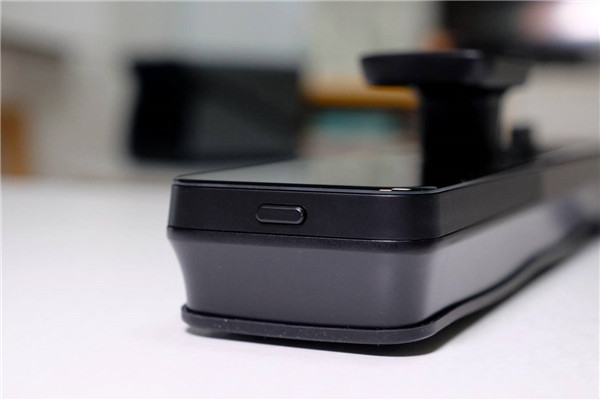 屏幕采用了可拆式设计,在后面板顶端有个实体按键,按住此键就可以取下整块屏幕模块了。其实屏幕模块也是大电池仓位的盖板,背面的金属极片在合上盖板之后会与仓位内的金属极片相接,实现对屏幕的供电。