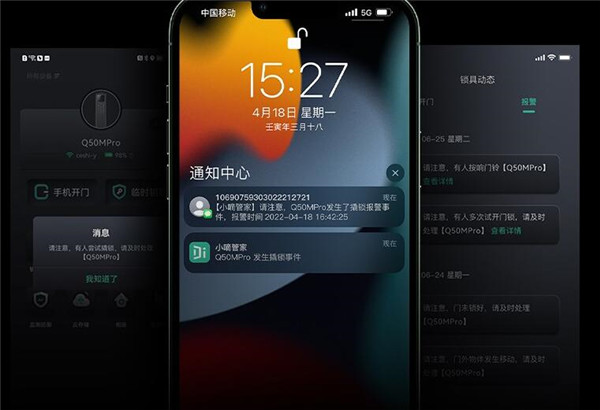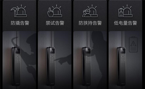 另外你还可以从指纹设置菜单中添加报警指纹,一旦遇到坏人胁迫开门的情况,可以使用事先录入的报警指纹解锁,在解锁的同时会给紧急联系人发送报警通知,神不知鬼不觉的完成报警。