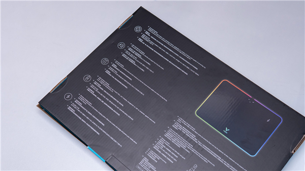 鼠标垫采用PC、PS和硅胶三层材质构成,尺寸为:352mm×255mm×6mm,纤薄的厚度放在桌面也不会显得突兀,日常办公和游戏都足以应对,四周为作了圆角处理的360度环绕RGB灯带。