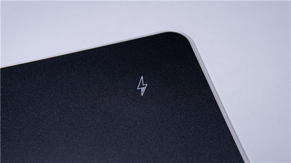 右上角印有一个“闪电”标识,内置无线充电线圈,支持主流的QI无线充电协议。