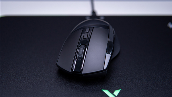 鼠标表面十分简约,没有过多的设计元素,顶部为灯光模式和灯光亮度按钮,并有一个状态指示灯。