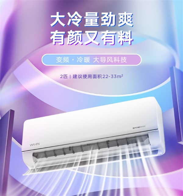 华凌N8HL1壁挂式空调,包括1匹和1.5匹两个规格,主打大导风板功能,出风更广送风更远,同时支持一键防直吹功能;搭载宽温度工作核心器件,支持-32℃低温制热和55℃高温制冷;搭载第四代自清洁技术,深度清洁蒸发器翅片;采用R32冷媒,APF值为5.29.符合新一级能效标准。