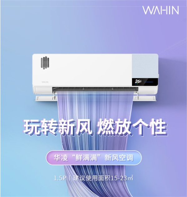 华凌首款新风空调(KFR-35GW/N8HK1)于2026年发布,其新风量与安装方式相关,非扩孔安装条件下新风量为40m/h,扩孔安装时新风量为60m/h,采用H13级过滤材料,PM2.5过滤效率99.95%;采用莫兰迪色系磁吸面板,轻松安装,另外还有多种风格的布艺贴凸显个性;配备TFT屏幕,可随工作模式切换而变换;支持华凌智联小程序、“碰一碰”凌魂贴、美的美居APP等多种操控方式;支持上下左右摆风及第四代自清洁;APF值为5.27.符合新一级能效标准。