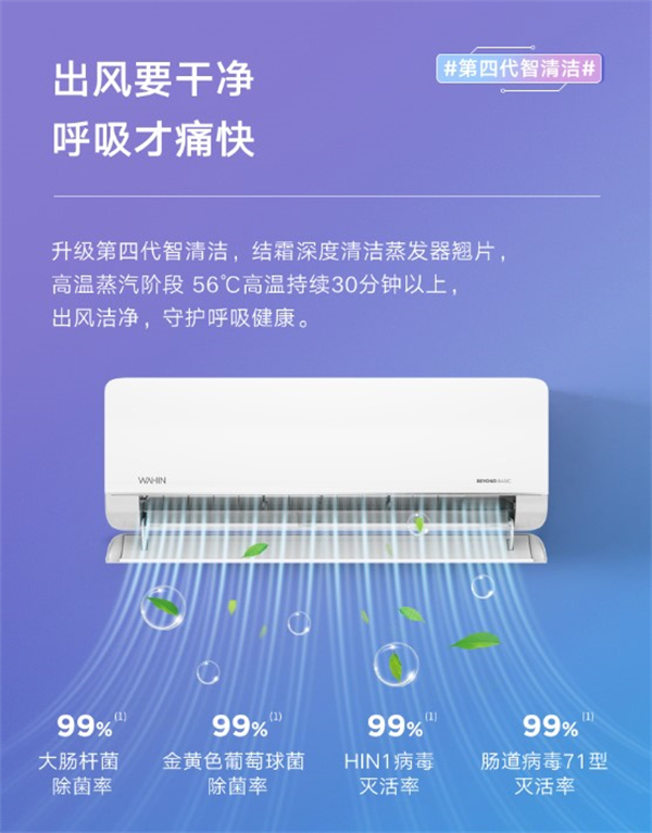 这款华凌空调打破传统条框造型棱角,采用第2代导风板,范围更广,送风距离更远,不用盯着出风口调风向,华凌小程序可实时察看,60S快速制暖,房间暖和不久等;第四代自清洁,升级自清洁,出风清新更健康;适用11-17平米空间使用~