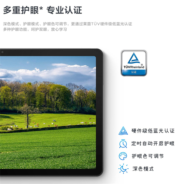 为了防止使用者长时间观看屏幕而视觉疲劳,联想小新Pad 2022的屏幕还通过了德国莱茵低蓝光认证,提供软硬件结合的护眼模式,有效的降低了屏幕闪烁和有害蓝光对眼睛的刺激及伤害,解决了用户为了工作和学习忘记了健康的重要。