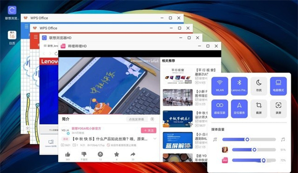 此外,联想小新Pad 2022内置的ZUI 13可以自行调节为电脑模式,此时,界面更Windows电脑的界面近乎相似,贴近Windows的交互体验,也令用户操控起来更加顺手,亲切。联想小新Pad 2022最多可以开五个类Windows窗口,多任务操控也不在话下。