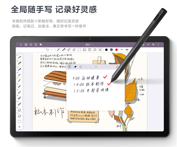 虽然说触控笔需要选配,但联想小新Pad 2022依然还是支持的。全新升级智能触控笔支持4096级压感,低延迟全局笔写,支持熄屏速记,拖拽粘贴/分享。书写绘画就像文具盒或笔筒里最爱用的那支笔一样,记录学习笔记,随时记录灵感创作,让你无拘无束。