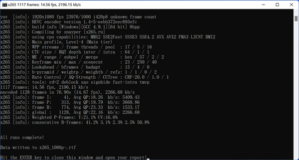 视频编码方面的测试中,戴尔成就5620 X264的成绩为26.16fps,X265的成绩为14.56fps,成绩并不算高,但表现也远超低功耗处理器。