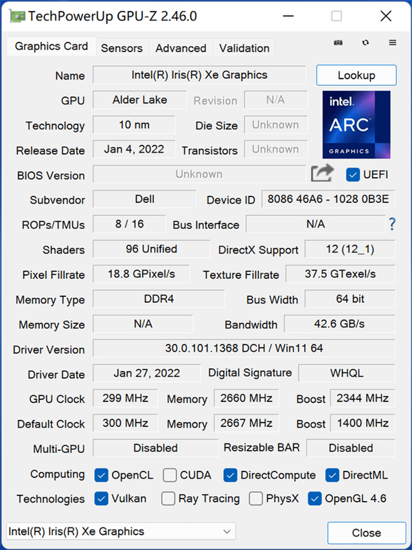大泽手中的这台戴尔成就5620并没有配备独立显卡,因此我们要格外关注这个英特尔锐炬Xe显卡,它决定着整机的图形处理能力上限。从十一代酷睿开始,英特尔锐炬Xe显卡核心数就从32EU飙升到了96EU,这使得核显的性能也变得十分可观。虽然面对3A大作还是有点力不从心,但已经可以从容面对大部分网游,并且在编解码等工作中可以给到更强的助力。