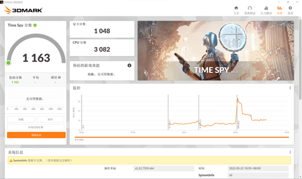 使用3DMark的Time Spy和Fire Strlke两个经典模式进行测试,可以看到它的显卡分数分别为1048和3332.满血96EU确实让它的表现更加出色,图形处理能力更强。