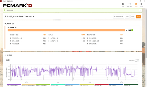 PCMark 10的测试部分,戴尔成就5620的总成绩为4105.观察子项成绩可以看到,这台电脑在应用启动、视频会议、网页浏览等常用基本功能上的表现比较突出,而在处理文档、表格或者进行数位内容创作时会相对差点意思。