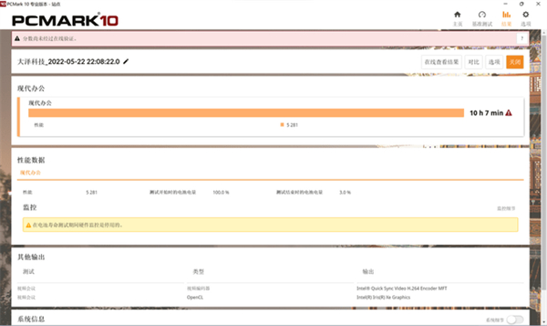 最后我们看一下整机的续航表现。使用PCMark 10的现代办公模式实测,它的成绩超过了10小时。众所周知,这项测试的强度要比日常使用高上一些。如果放在日常,它的续航时间还要高上很多。如果你是一个8小时工作党,且预计当天加班时间不超过3小时,不带适配器也完全可以不慌。