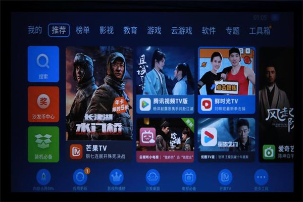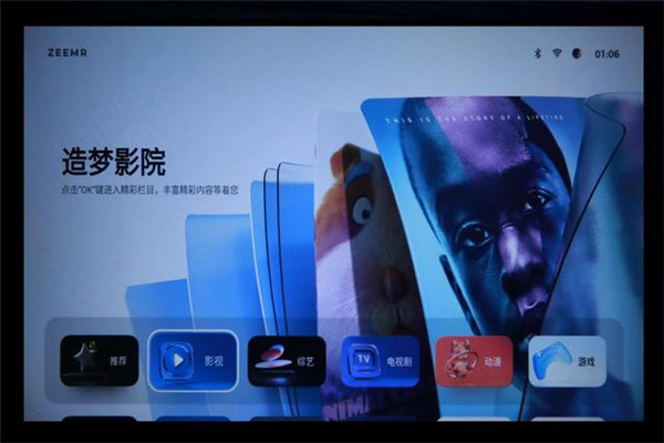 知麻造梦OS系统界面清爽、简约,内容以影视为主,首页分为推荐、影视、综艺、电视剧、动漫、游戏六大专栏,没有过多复杂的复选框,我可以直观、快速找到自己需要的内容。